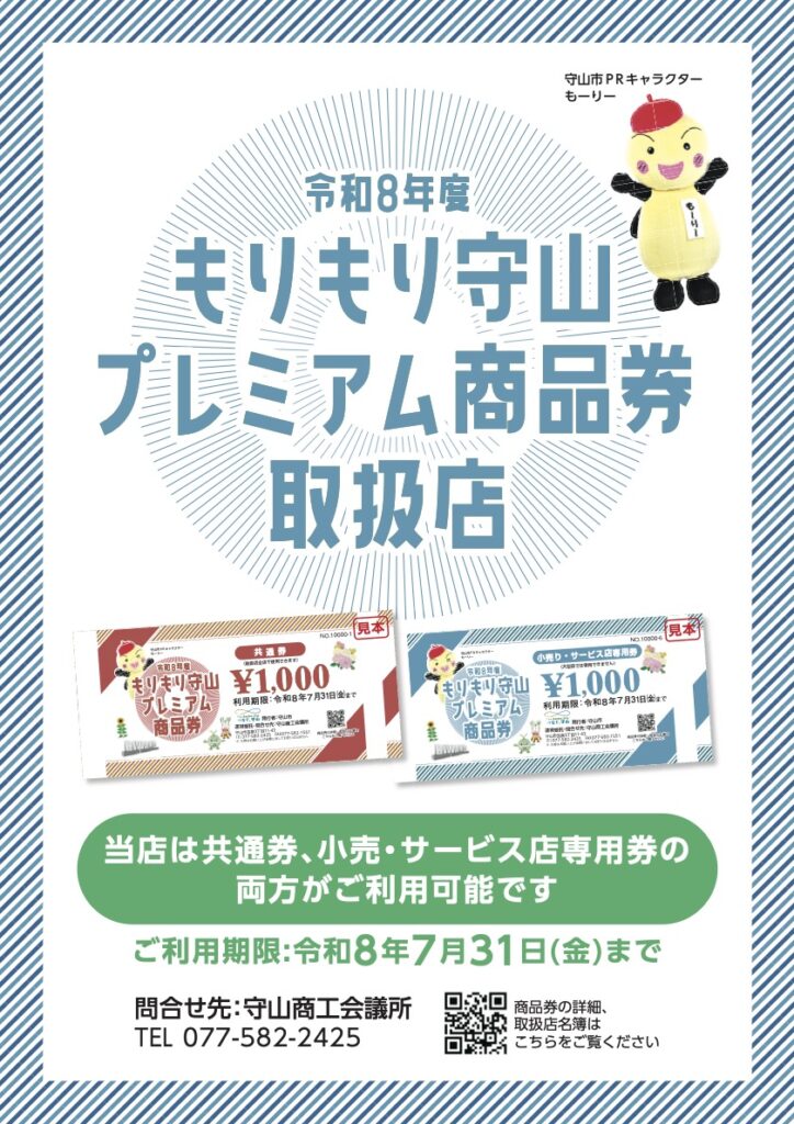 県内の方はもちろん、県外の方も滋賀県に来られた時はお気軽にお立ち寄り下さい。店前に駐車場も完備しておりますので、お車でも安心してご来店いただけます。